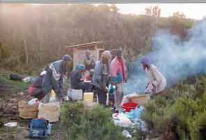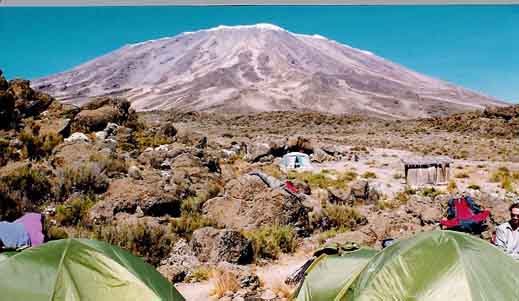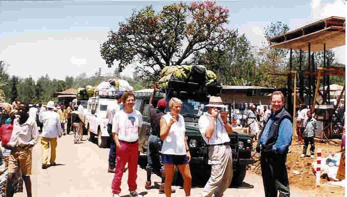 Anreise mit dem Flugzeug bis Arusha (Tanzania), Übernachtung im Hotel, dann Weiterfahrt mit einem Bus und später mit mehreren Landrovern zum Kibu-Fuss in der Nähe der kenianischen Grenze. |