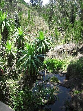 Abstieg durch wunderschöne Landschaftsformen, und Urwald in etwa 6 Stunden zum Mawenzi Gate (Tor des Nationalpark).