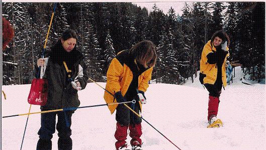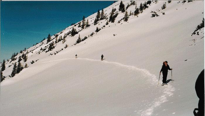 Die Zeitspanne in der man sich bei Licht bewegt ist im Winter deutlich kürzer als im Sommer, eine erheblich intensivere Tourenplanung als im Sommer also notwendig. Der sichere, routinierte, fehlerlose Umgang mit Kompass, Karte und Höhenmesser ist bei oft nicht erkennbaren Wegen bzw. Markierungen selbstverständliche Voraussetzung. Das Tempo ist ein sehr endscheidendes Problem. Ganz grob kann man im Vergleich zum Sommer je nach Schneeart und Schneemengen den Zeitbedarf im Aufstieg mindestens um ein Drittel höher, zum Teil aber auch auf das Doppelte oder teilweise das Dreifache ansetzen. |