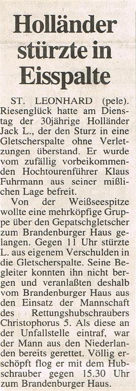 Artikel einer Bergung aus einer Gletscherspalte